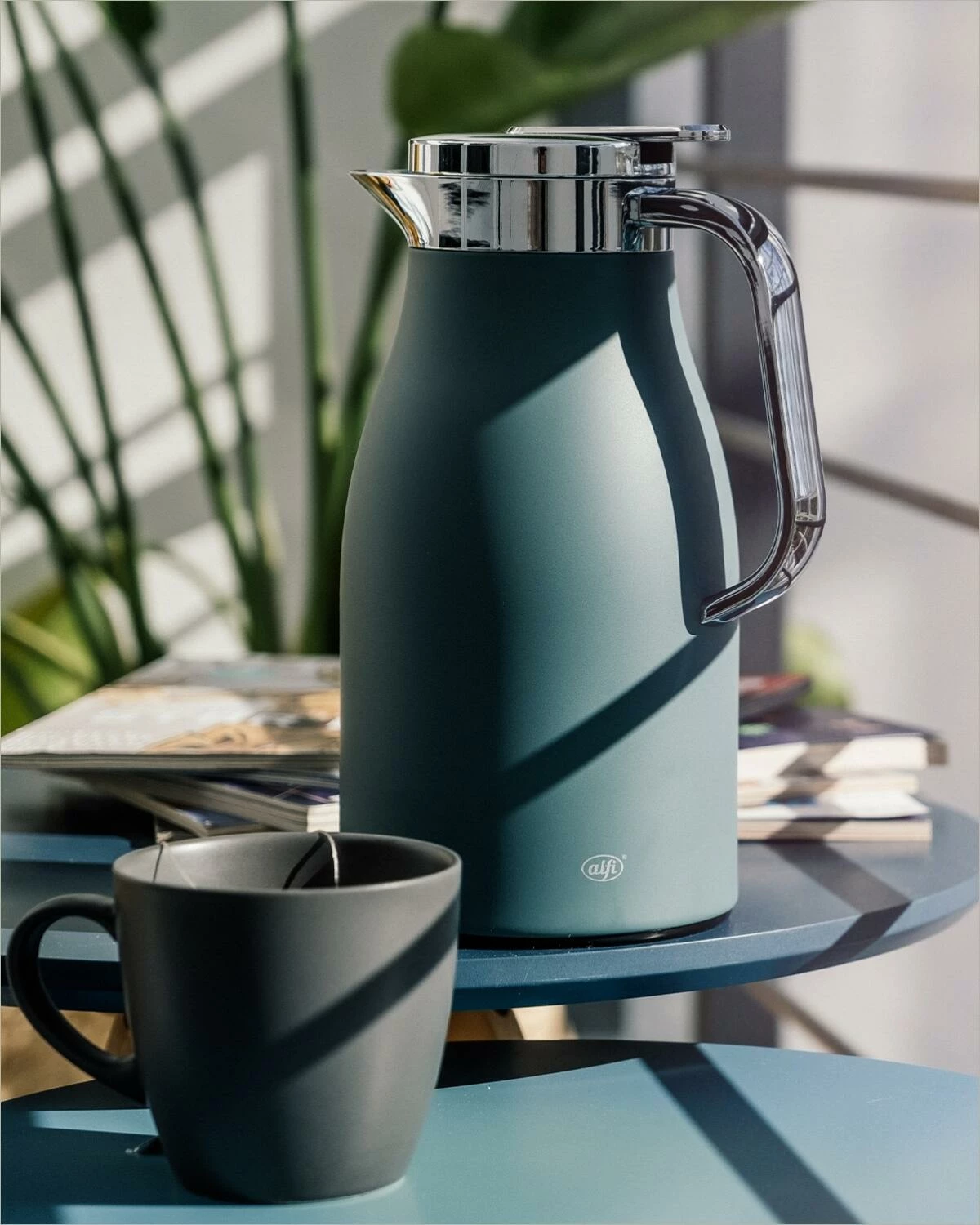 Isolierkanne Skyline in dark denim. Die Isolierkanne in einem eleganten Dunkelblau ist nicht nur klassisch schön, sie hält ihren Inhalt 12 Stunden lang heiß und 24 Stunden lang kalt.