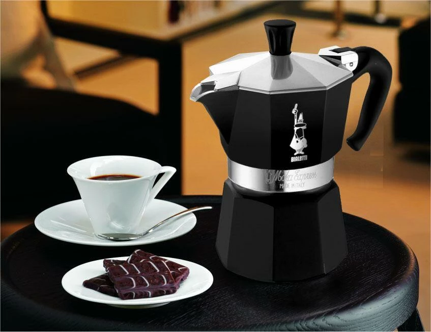 Espressokocher aus der Serie Moka Express Black. Der italienische Geschmack des Kaffees.