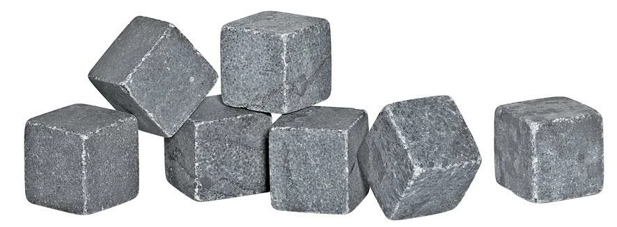 Die Kühlsteine sorgen dafür, dass Whisky, Weißwein, Cocktails und Kaltgetränke jeder Art stets die richtige Temperatur haben. Sie werden im Gefrierfach gelagert, haben das Format von Eiswürfeln und haben gegenüber dem klassischen Eiswürfel aus gefrorenem Wasser mehr als einen Vorteil: Die Granit-Würfel verwässern den Drink nicht, sie sehen stylisch und edel aus und sind nachhaltig, da sie wiederverwendbar sind.