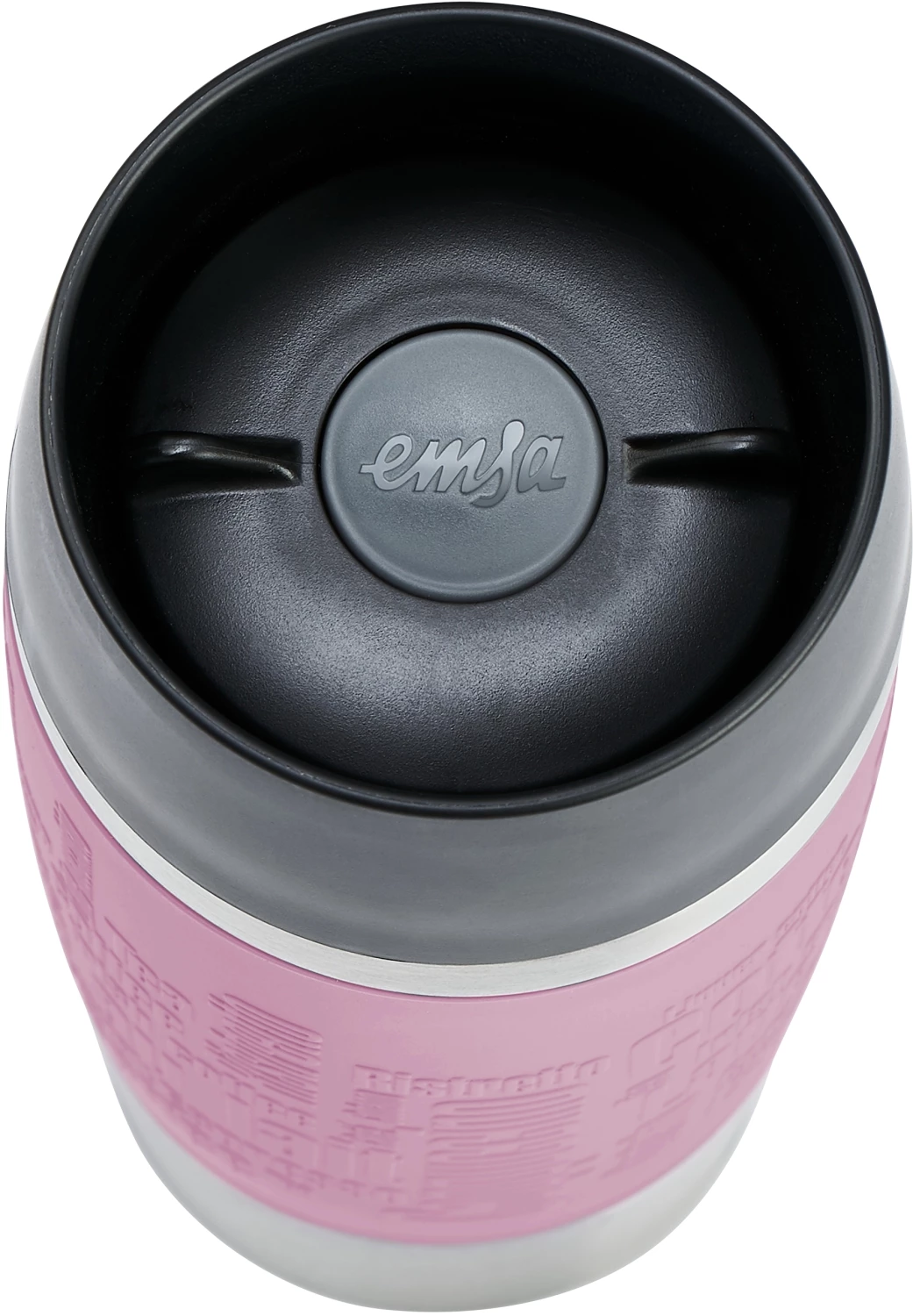 Emsa lässt sich ganz einfach per Knopfdruck öffnen und wieder schließen. Dank der praktischen 360° Trinköffnung können Sie Ihr Lieblingsgetränk von allen Seiten genießen. Der hochwertige Edelstahlkolben fasst bis zu 0,36 Liter und ist von einer rutschfesten Griffzone ummantelt.