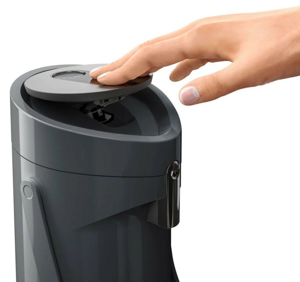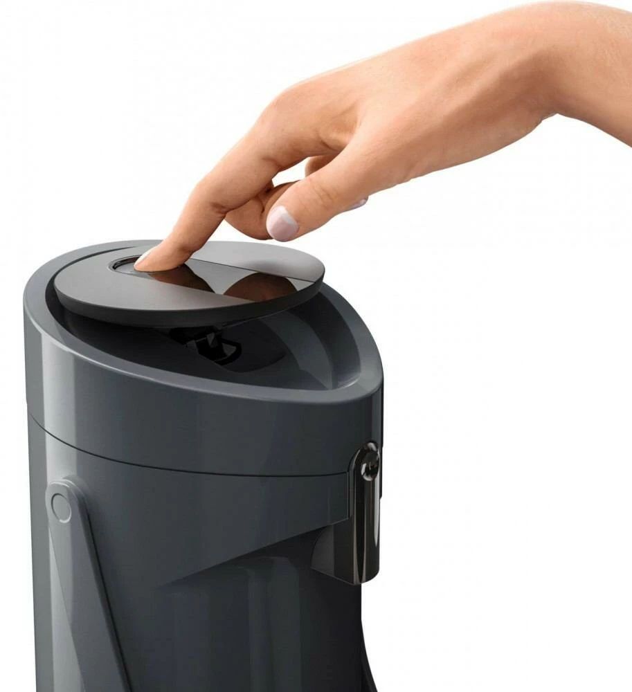 Das moderne Design und die hohe Funktionalität machen diese Pumpkanne zum idealen Begleiter. Dank des hochklappbaren Henkels ist ein besonders sicherer Transport gewährleistet und das Comfort-Press System sorgt dafür, dass mit minimalstem Kraftaufwand eine maximale Pumpleistung erzeugt wird. Der doppelwandige Vakuum-Glaskolben im Innern sorgt dafür, dass Flüssigkeiten bis zu 24 Stunden lang kalt oder 12 Stunden lang warm gehalten werden. Der drehbare Fuß, die abnehmbare Auffangschale und der abnehmbare Pumpkopf sorgen für ein leichtes Befüllen und Reinigen.
