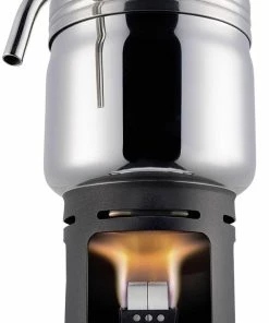 Sie ist klein, leicht und damit einfach praktisch und verspricht ungetrübten Kaffeegenuss. Der Kaffeefilter ist besonders feinmaschig. Zu befeuern mit 2 x 5g Esbit Trockenbrennstoff-Tabletten. Der dazugehörige Stand ist aus schwarz lackiertem Stahl und lässt sich platzsparend im Behälter verstauen.
