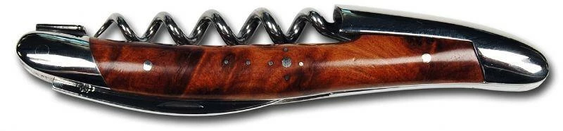 Sommeliermesser in Thuja. Das Laguiole Sommeliermesser ist patentiert und wird aus besonders edlen Materialien hergestellt. Für die Eleganz seiner Form und die effiziente Handhabung erhielt es 1996 den Design-Plus-Preis während der Messe Ambiente in Frankfurt.