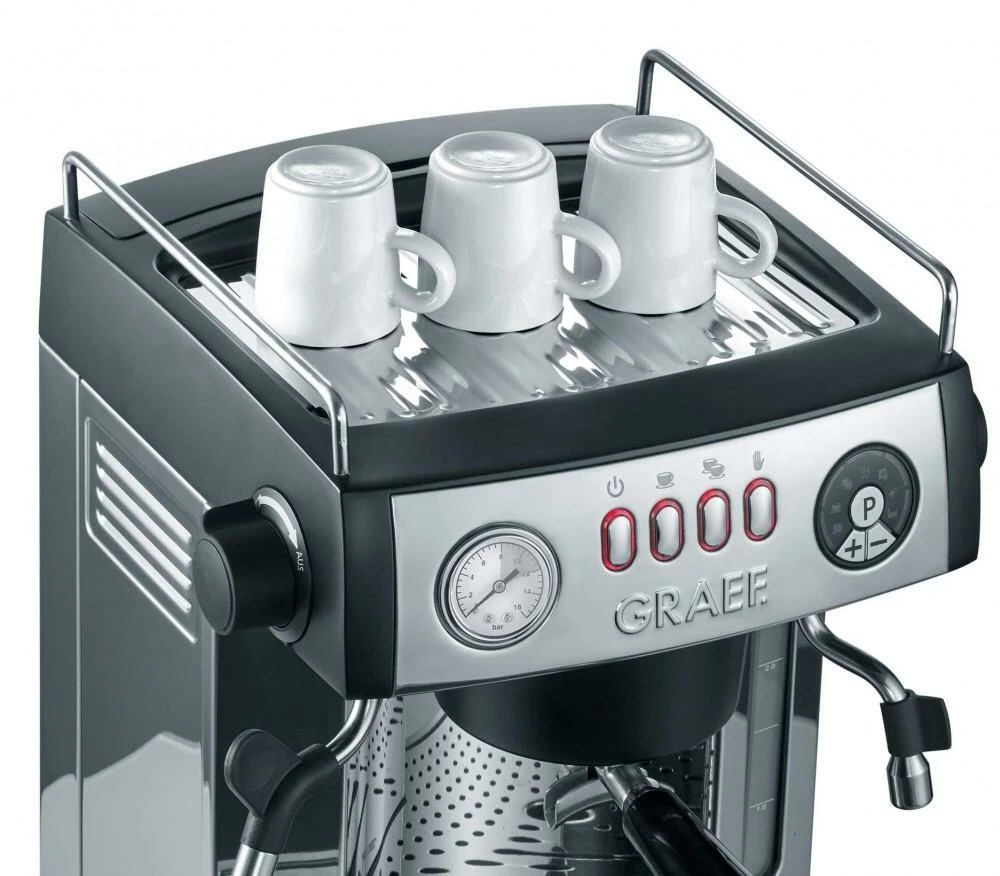 Ob morgens, in der Mittagspause oder während der Arbeit: Mit einem frisch zubereiteten, aromatischen Espresso oder Cappuccino mit feiner Milchschaumhaube werden müde Geister wieder munter! Mit der Graef Siebträger-Espressomaschine baronessa geht die Zubereitung beider Heißgetränke nun viel schneller von der Hand, denn dank des Doppel-Pumpen-Systems und den zwei separaten Heizkreisläufen können Espresso und Milchschaum gleichzeitig zubereitet werden.