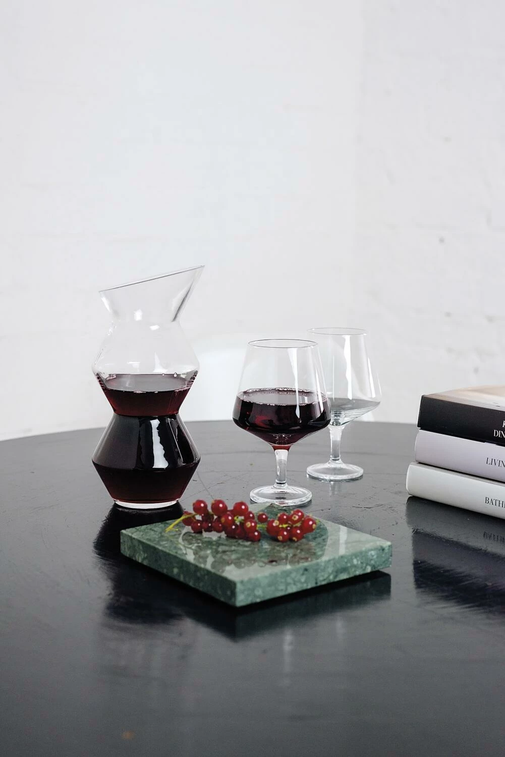 Die Aero Karaffe von Magisso ist – wie der Name schon verrät – besonders luftig und fügt Wein beim Eingießen maximalem Luftsrom aus, sodass Tannine gemildert werden und die Textur des Wein frisch und abgerundet weich wird.