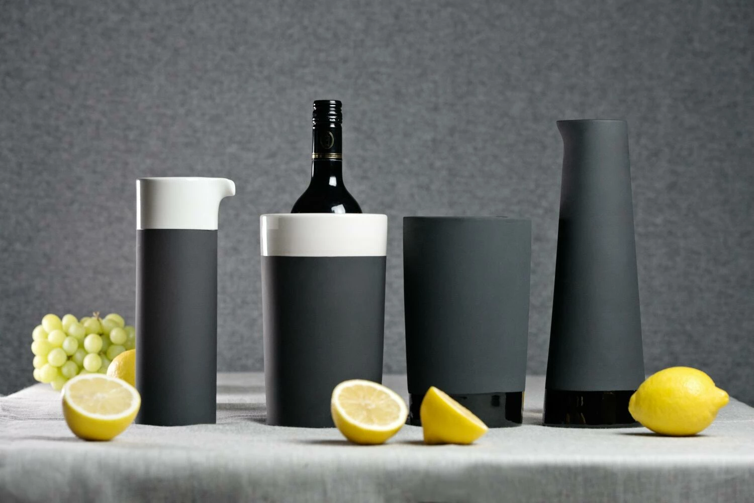 Magisso Weinkühler in terrakotta. Hergestellt aus schwarz-glasiertem Terrakotta hält der Weinkühler Flaschen zwei bis vier Stunden lang kühl.
