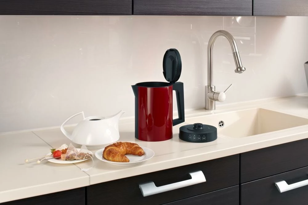 Wasserkocher fontana5 in rot. Der neue Wasserkocher von ritter, der in der Tradition des Bauhauses steht – Reduktion aufs Wesentliche. Langlebige Materialien. Produktion vor Ort. Jetzt schon ein Klassiker.