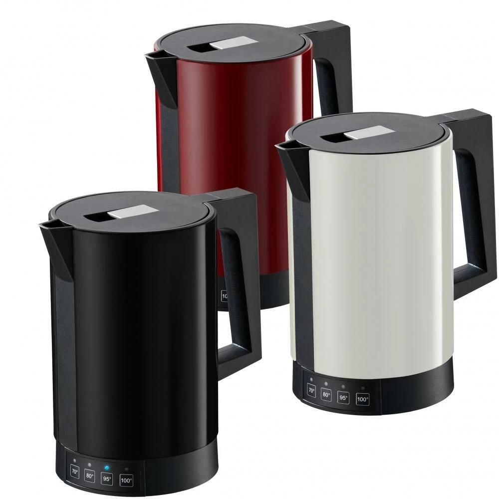 Der kabellose Wasserkocher mit 360°-Basisstation von ritter hat ein wärmeisoliertes Außengehäuse aus hochwertigem Acrylglas. Durch ein beidseitiges Wasserstands-Sichtfenster kann die Füllmenge abgelesen werden. Die eingestellte Temperatur von 70°, 80°, 95° oder 100° C, wird mittels LED’s angezeigt. In puncto Sicherheit erfüllt der Wasserkocher ritter fontana5 mit Überhitzungsschutz, Trockengehschutz und automatischem Abschalten alle Sicherheitsaspekte. Und natürlich ist der Wasserkocher fontana5 „made in Germany” – wie alles von ritter.