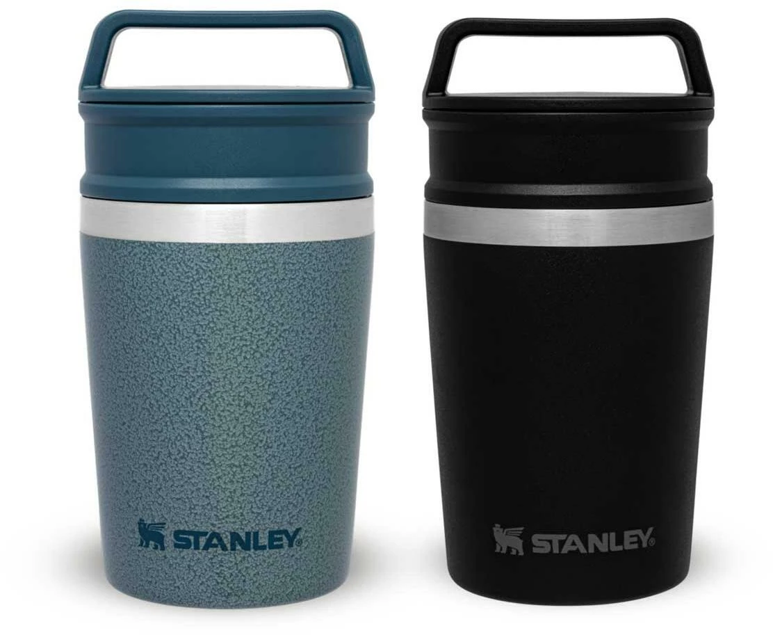 Klein, aber oho: Der mit einer Oberfläche in Hammertone Ice ausgestattete Stanley SHORTSTACK TRAVEL MUG hat das gewisse Etwas, um ein Lieblingsprodukt zu werden: Bis zu 3 Stunden heiß oder bis zu 4 Stunden kalt werden Getränke dank der Vakuumisolierung gehalten. Das Volumen von 236 ml richtet sich an all diejenigen, die nicht einen XXL-Trinkbecher benötigen. Er passt unter den Auslauf handelsüblicher Kaffeeautomaten für den kleinen Coffee-to-go, macht sich aber auch gut für den Whiskey auf der Terrasse. Durchdacht ist der zweistufige Verschluss, der bei gleichzeitiger Auslaufsicherheit sowohl das Trinken aus einer kleinen Öffnung unterwegs sowie das Trinken aus dem offenen Becher möglich macht. Alle Teile sind spülmaschinenfest und natürlich BPA frei.