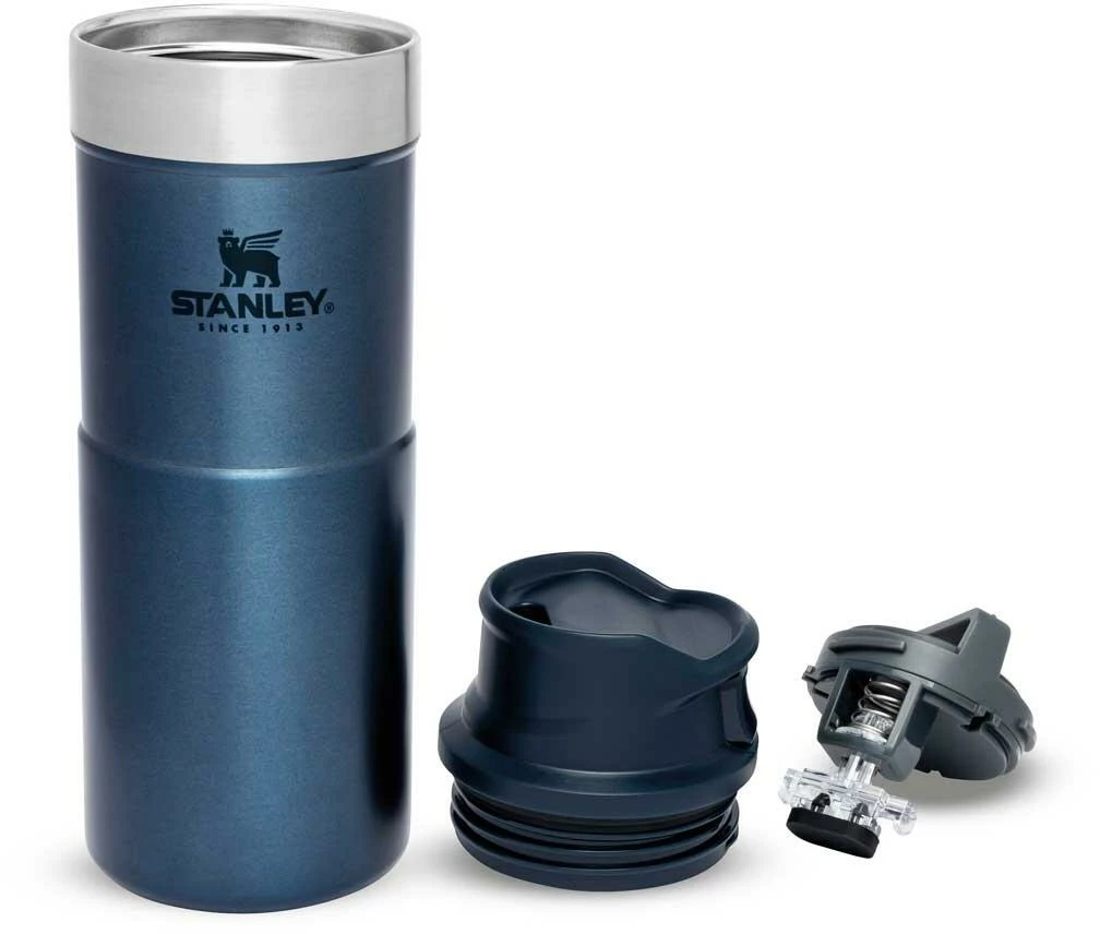 Mit der Slim Line Version des TRIGGER-ACTION TRAVEL MUG führt Stanley eine überarbeitete Version der einhändig bedienbaren Becher ein. Durch das neue, schlankere Design liegt der Becher noch angenehmer in der Hand und passt in alle gängige PKW-Getränkehalter. Das Drücken der großen und sehr leichtgängigen Taste zum Aktivieren der Trinköffnung mit einer Hand macht Trinken – on the go – zum Vergnügen. Der Trinkbecher in nightfall-blue aus rostfreiem 18/8-Edelstahl mit Vakuumisolierung besitzt ein Fassungsvermögen von 354 ml und hält Getränke bis zu 5 Stunden heiß oder 6 Stunden gekühlt. Der TRIGGER-ACTION TRAVEL MUG ist komplett spülmaschinenfest und auslaufsicher. BPA-frei.