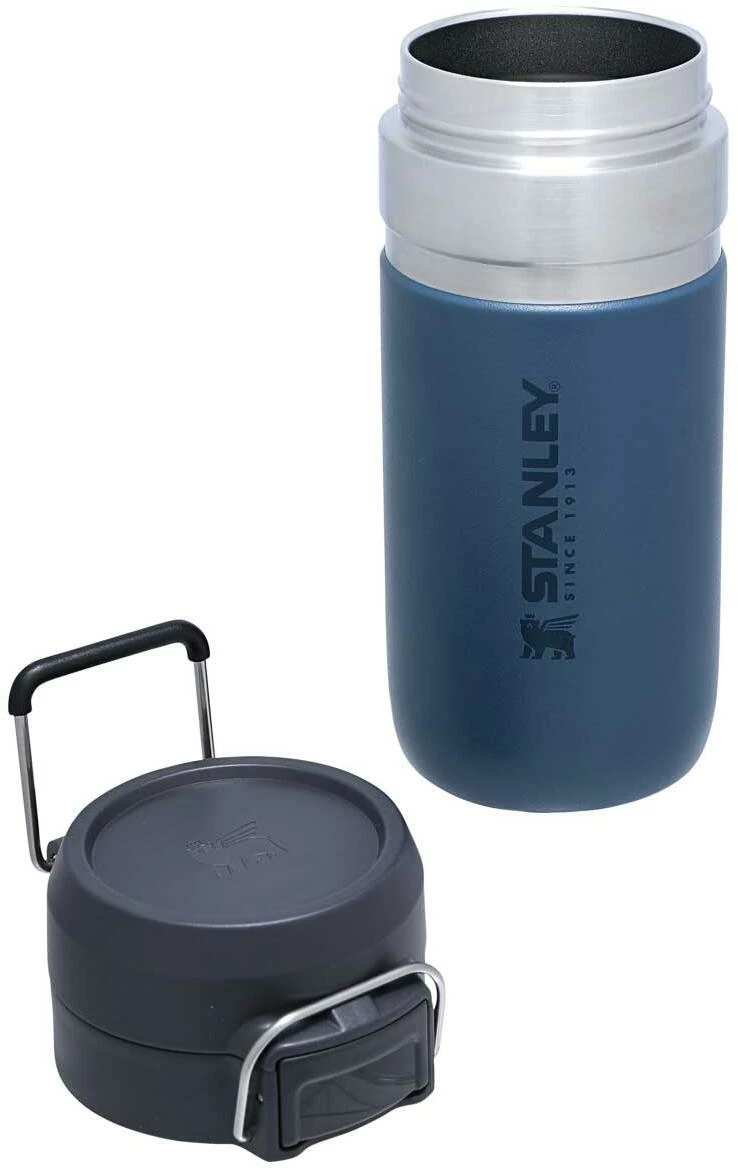 Ob für die Outdoor-Tour, den Sport oder einfach On The Road, die Stanley QUICK-FLIP WATER BOTTLE ist der ideale Begleiter gegen den Durst. Die auslaufsichere Flasche ist mit einem innovativen, zweistufigen Sicherheitsverschluss ausgestattet. Beim Transport wird der Verschluss gegen unbeabsichtigtes Öffnen von einem Edelstahlbügel fixiert. Wird dieser gelöst und der Push-Button Knopf gedrückt, flippt der Deckel federunterstützt auf. Die Trinkflasche aus rostfreiem 18/8-Edelstahl mit Vakuumisolierung besitzt ein Fassungsvermögen von 473 ml und hält Getränke bis zu 5 Stunden heiß oder 7 Stunden gekühlt. Die Flasche passt in gängige PKW-Getränkehalter und ist mit einem beweglichen Bügel zum Anhängen an den Rucksack oder Tragegriff ausgestattet. Alle Teile können in der Spülmaschine gereinigt werden. BPA-frei.
