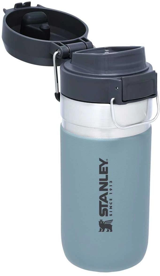 Ob für die Outdoor-Tour, den Sport oder einfach On The Road, die Stanley QUICK-FLIP WATER BOTTLE ist der ideale Begleiter gegen den Durst. Die auslaufsichere Flasche ist mit einem innovativen, zweistufigen Sicherheitsverschluss ausgestattet. Beim Transport wird der Verschluss gegen unbeabsichtigtes Öffnen von einem Edelstahlbügel fixiert. Wird dieser gelöst und der Push-Button Knopf gedrückt, flippt der Deckel federunterstützt auf. Die Trinkflasche aus rostfreiem 18/8-Edelstahl mit Vakuumisolierung besitzt ein Fassungsvermögen von 473 ml und hält Getränke bis zu 5 Stunden heiß oder 7 Stunden gekühlt. Die Flasche passt in gängige PKW-Getränkehalter und ist mit einem beweglichen Bügel zum Anhängen an den Rucksack oder Tragegriff ausgestattet. Alle Teile können in der Spülmaschine gereinigt werden. BPA-frei.