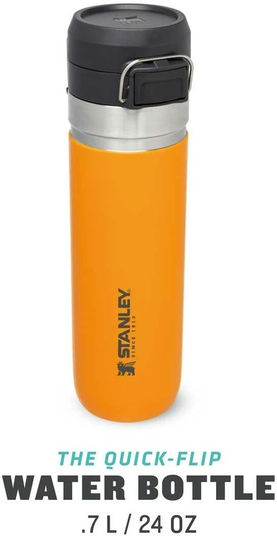 Ob für die Outdoor-Tour, den Sport oder einfach On The Road, die Stanley QUICK-FLIP WATER BOTTLE ist der ideale Begleiter gegen den Durst. Die auslaufsichere Flasche ist mit einem innovativen, zweistufigen Sicherheitsverschluss ausgestattet. Beim Transport wird der Verschluss gegen unbeabsichtigtes Öffnen von einem Edelstahlbügel fixiert. Wird dieser gelöst und der Push-Button Knopf gedrückt, flippt der Deckel federunterstützt auf. Die Trinkflasche aus rostfreiem 18/8-Edelstahl mit Vakuumisolierung besitzt ein Fassungsvermögen von 709 ml und hält Getränke bis zu 8 Stunden heiß oder 12 Stunden gekühlt. Die Flasche passt in gängige PKW-Getränkehalter und ist mit einem beweglichen Bügel zum Anhängen an den Rucksack oder Tragegriff ausgestattet. Alle Teile können in der Spülmaschine gereinigt werden. BPA-frei.