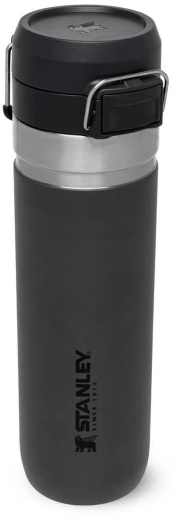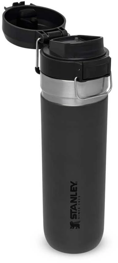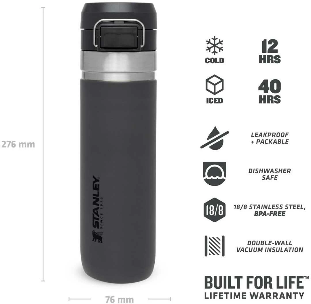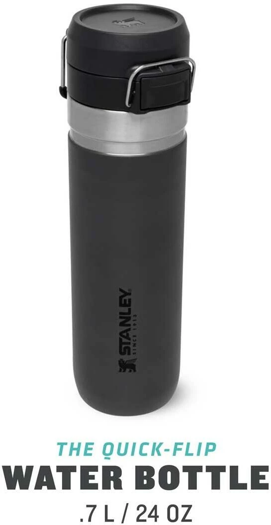 Ob für die Outdoor-Tour, den Sport oder einfach On The Road, die Stanley QUICK-FLIP WATER BOTTLE ist der ideale Begleiter gegen den Durst. Die auslaufsichere Flasche ist mit einem innovativen, zweistufigen Sicherheitsverschluss ausgestattet. Beim Transport wird der Verschluss gegen unbeabsichtigtes Öffnen von einem Edelstahlbügel fixiert. Wird dieser gelöst und der Push-Button Knopf gedrückt, flippt der Deckel federunterstützt auf. Die Trinkflasche aus rostfreiem 18/8-Edelstahl mit Vakuumisolierung besitzt ein Fassungsvermögen von 709 ml und hält Getränke bis zu 8 Stunden heiß oder 12 Stunden gekühlt. Die Flasche passt in gängige PKW-Getränkehalter und ist mit einem beweglichen Bügel zum Anhängen an den Rucksack oder Tragegriff ausgestattet. Alle Teile können in der Spülmaschine gereinigt werden. BPA-frei.