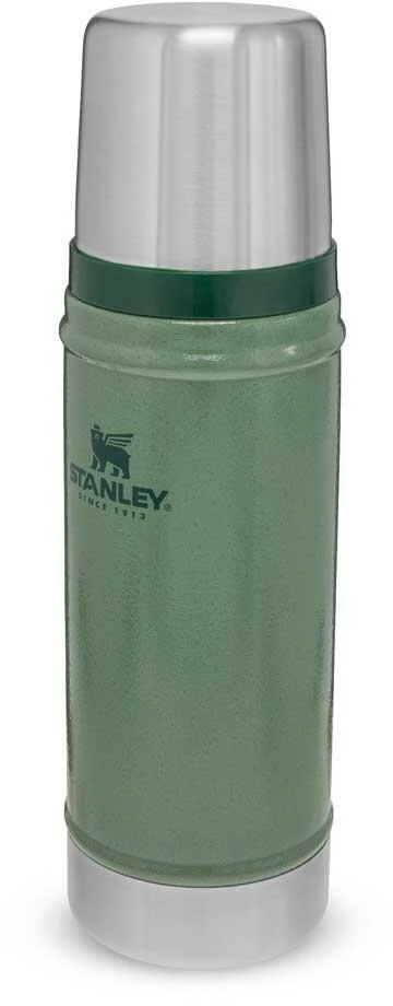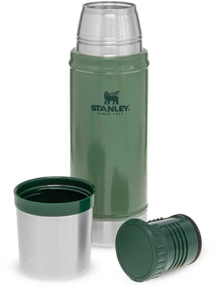 Ideal für das Picknick. In der Stanley Classic Vakuum-Flasche aus rostfreiem Edelstahl kann man sowohl warme als auch kalte Getränke mitnehmen. Eine Doppelwand gewährleistet eine gute Isolation und hält die Flüssigkeit bis zu 15 Stunden kalt oder 15 Stunden heiß. Die Flasche weist eine 5 cm weite Öffnung auf und lässt sich so leicht reinigen. Praktisch ist der isolierte Deckel mit Gefäßfunktion. Das Gehäuse ist mit einer robusten, grünen Hammerschlaglackierung versehen. Fassungsvermögen 0,47 Liter.