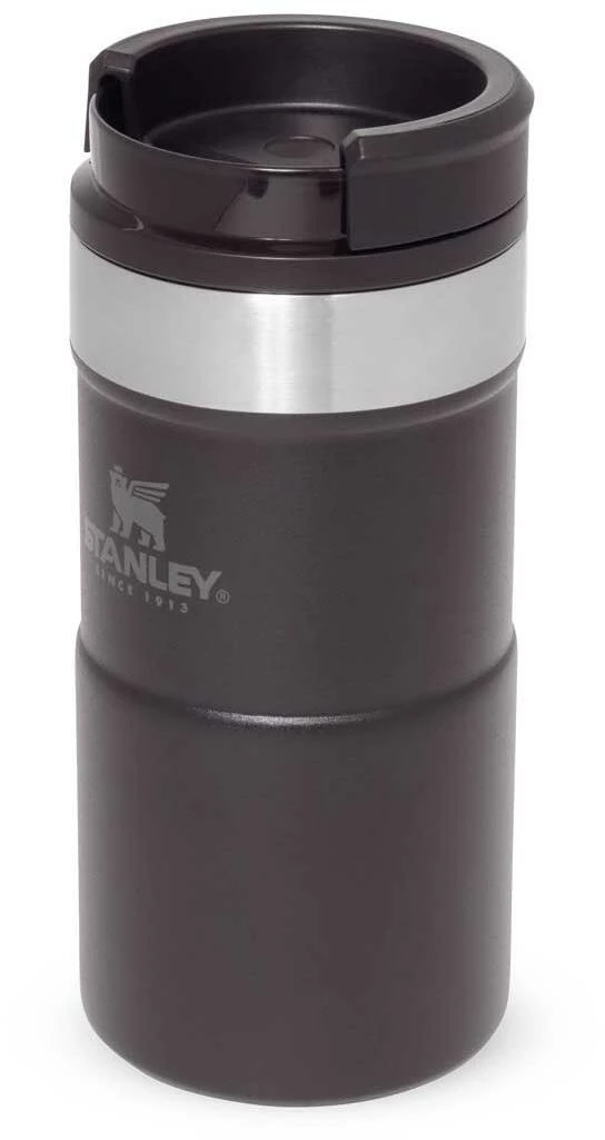 Mit dem Stanley NEVERLEAK TRAVEL MUG werden durch seine doppelwandige Edelstahl-Vakuumisolierung heiße Getränke bis zu 3 Stunden heiß und kalte Getränke bis zu 4 Stunden kalt gehalten. Der Trinkbecher aus rostfreiem 18/8-Edelstahl besitzt ein Fassungsvermögen von 250 ml und verfügt über einen einzigartigen 3-Positionen Deckel, der sich zum einfachen Trinken aufdrehen lässt und beim Schließen fest verriegelt. Der NEVERLEAK TRAVEL MUG ist komplett spülmaschinenfest, auslaufsicher und passt in gängige PKW-Getränkehalterungen. BPA-frei.