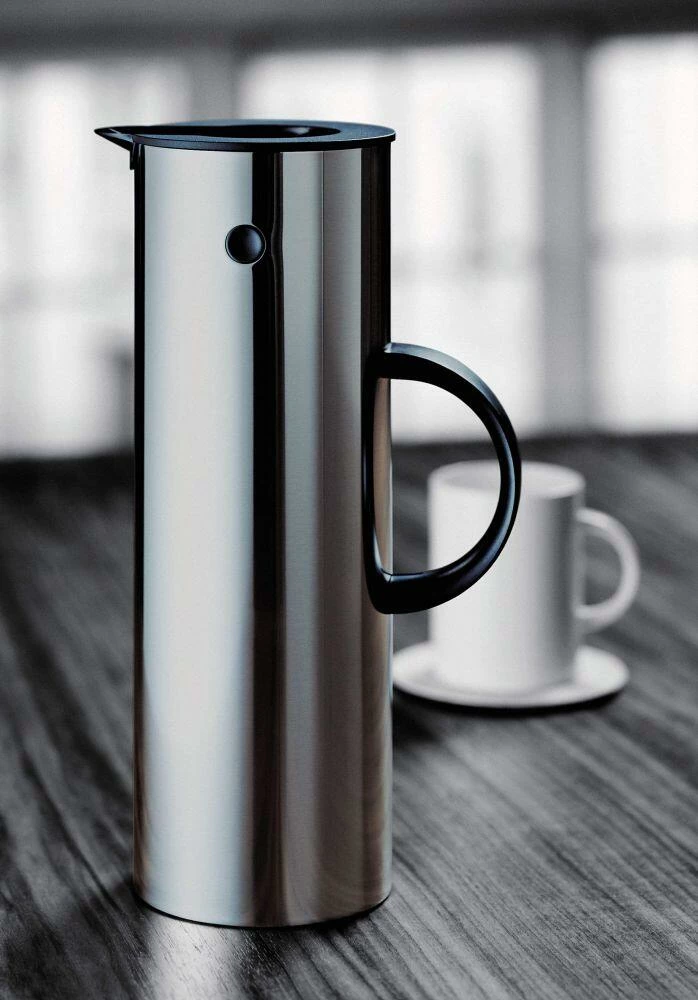 Stelton für einfaches Öffnen und Verschließen. Seit die Kanne 1977 von Erik Magnussen entworfen wurde, erfreut sie sich bei Kaffee-, Tee- und Designliebhabern größter Beliebtheit und ist so über die Jahre zum Klassiker und auch zur Modeikone geworden.