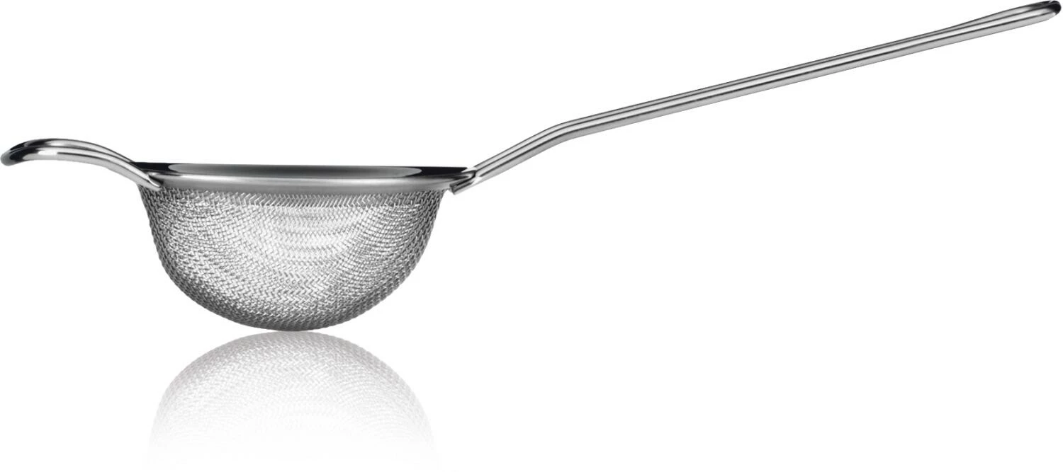 Ein feinmaschiges Teesieb zum Abseihen von Getränken und Bestäuben mit Puderzucken und Kakao.Die
