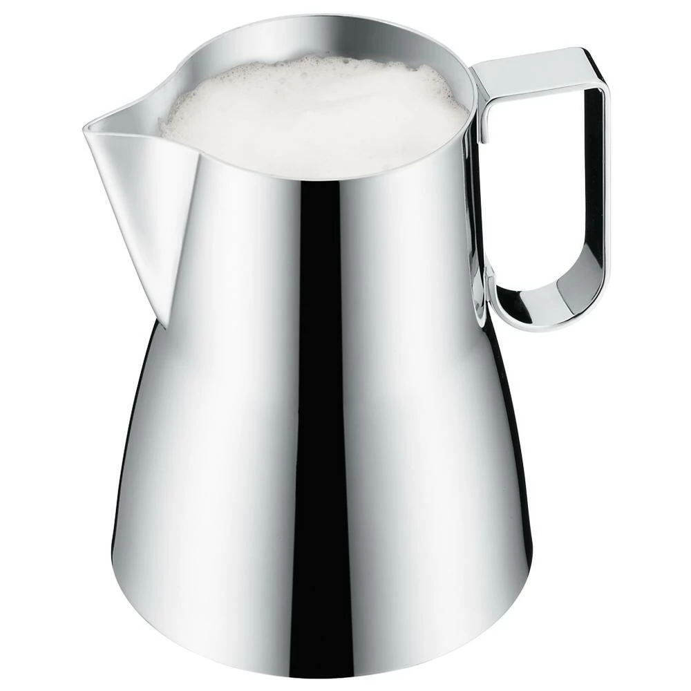 WMF Krug Barista. Milchkrug zur Zubereitung von Milchschaum. Die unten geweitete Form ist ideal für die Herstellung von Milchschaum mit der Dampfdüse. Der spitze Ausguss erleichtert das Ausgießen. Ausreichend für eine große Portion Milchschaum und dabei handlich.