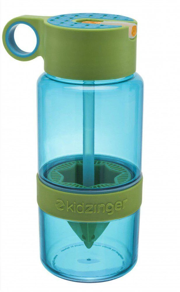 Zing Anything Kid Zinger, blau. Trinkflasche mit integrierter Fruchtpresse und versenkbarem Trinkhalm. Die Kid Zinger Flasche aromatisiert Wasser mit natürlichen Aromen. Perfekt für Schule und Sport!